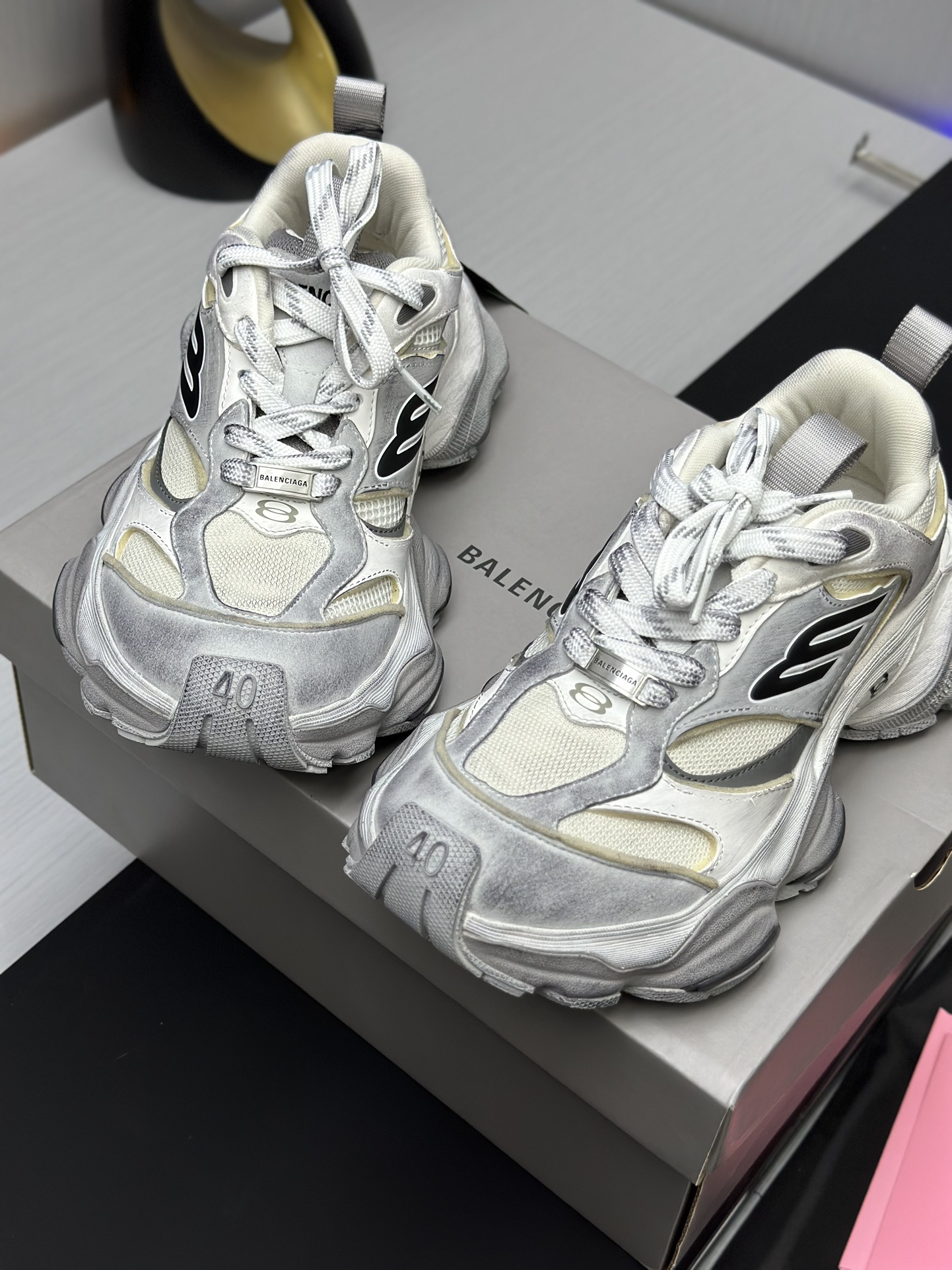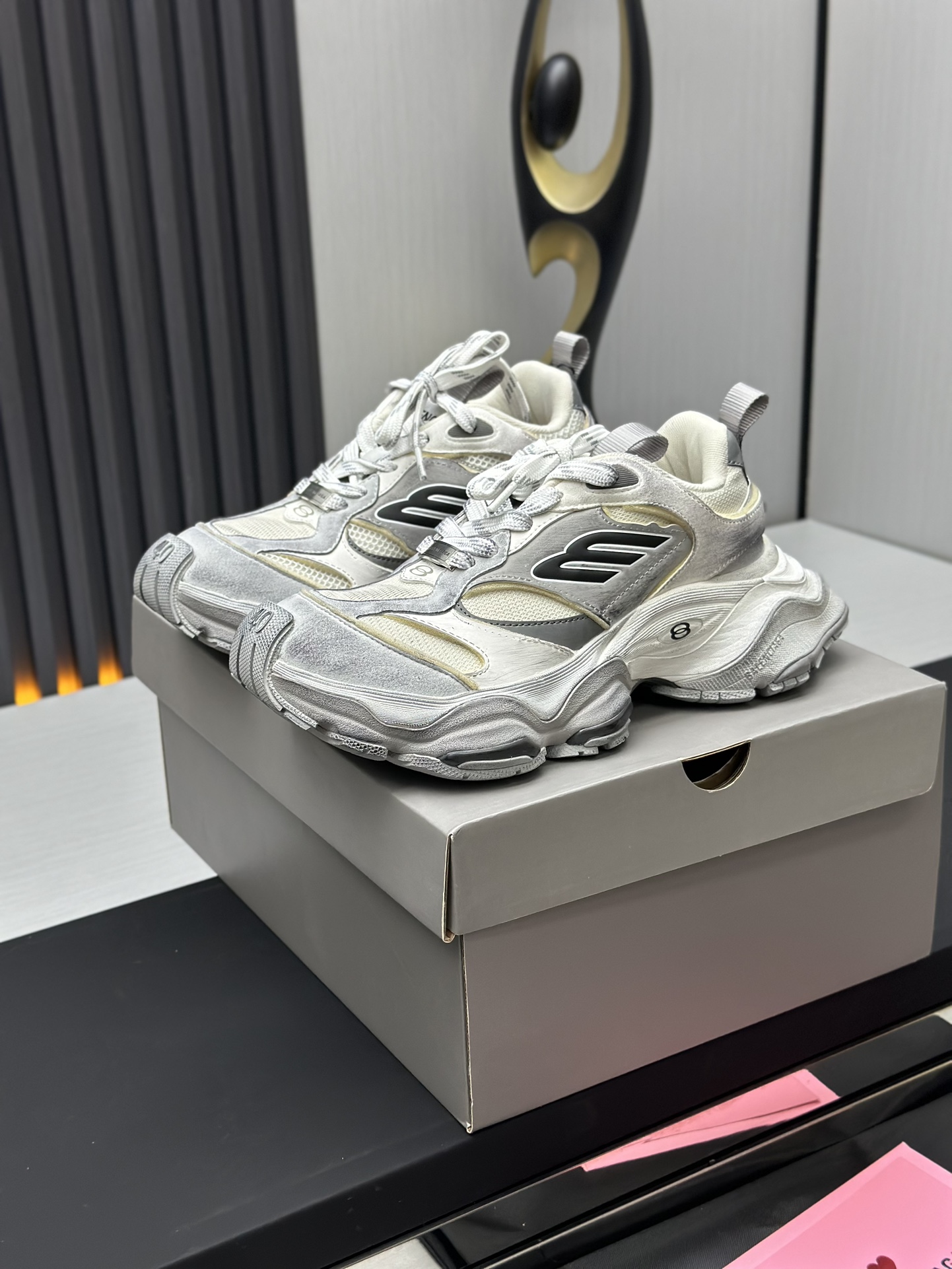 Balenciaga officially launches its new sports shoe model, the 10XL. This oversized shoe continues Balenciaga’s exploration of extreme exaggerated silhouettes, taking gym training shoes as the prototype and comprehensively enlarging the design structure to strengthen the association with athlete identity. The slanted logo B on the outside of the shoe presents a kind of accelerated running stance, full of movement. Despite its huge silhouette, this sneaker feels extremely light on the foot.