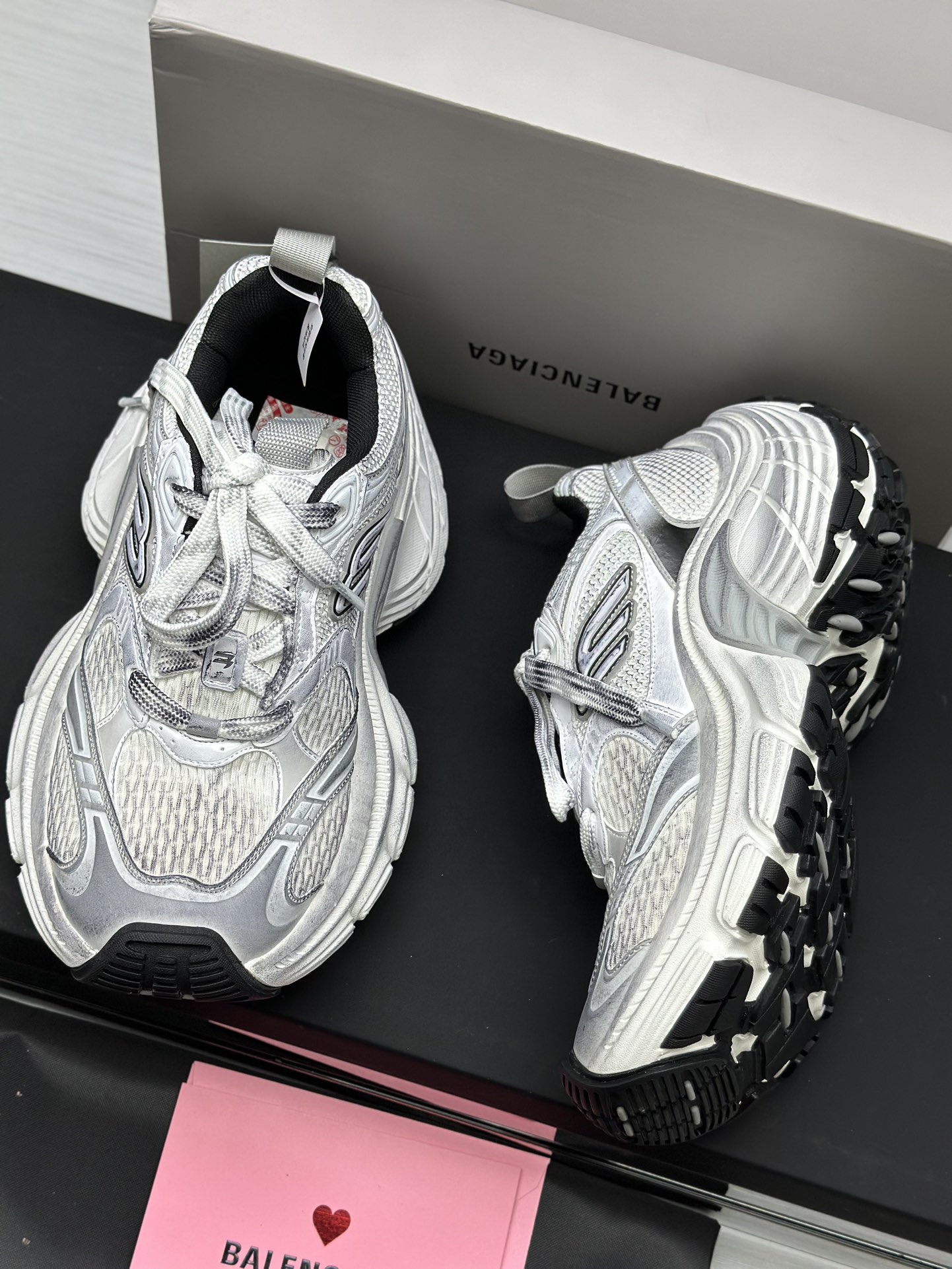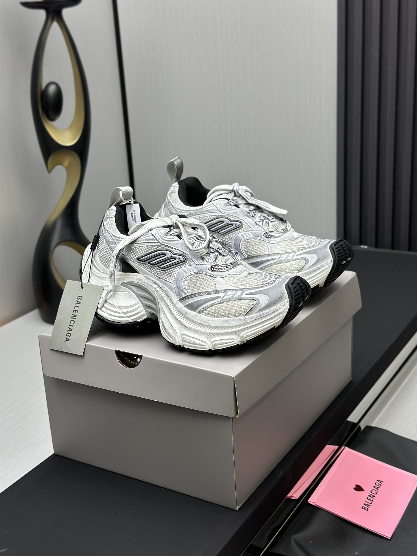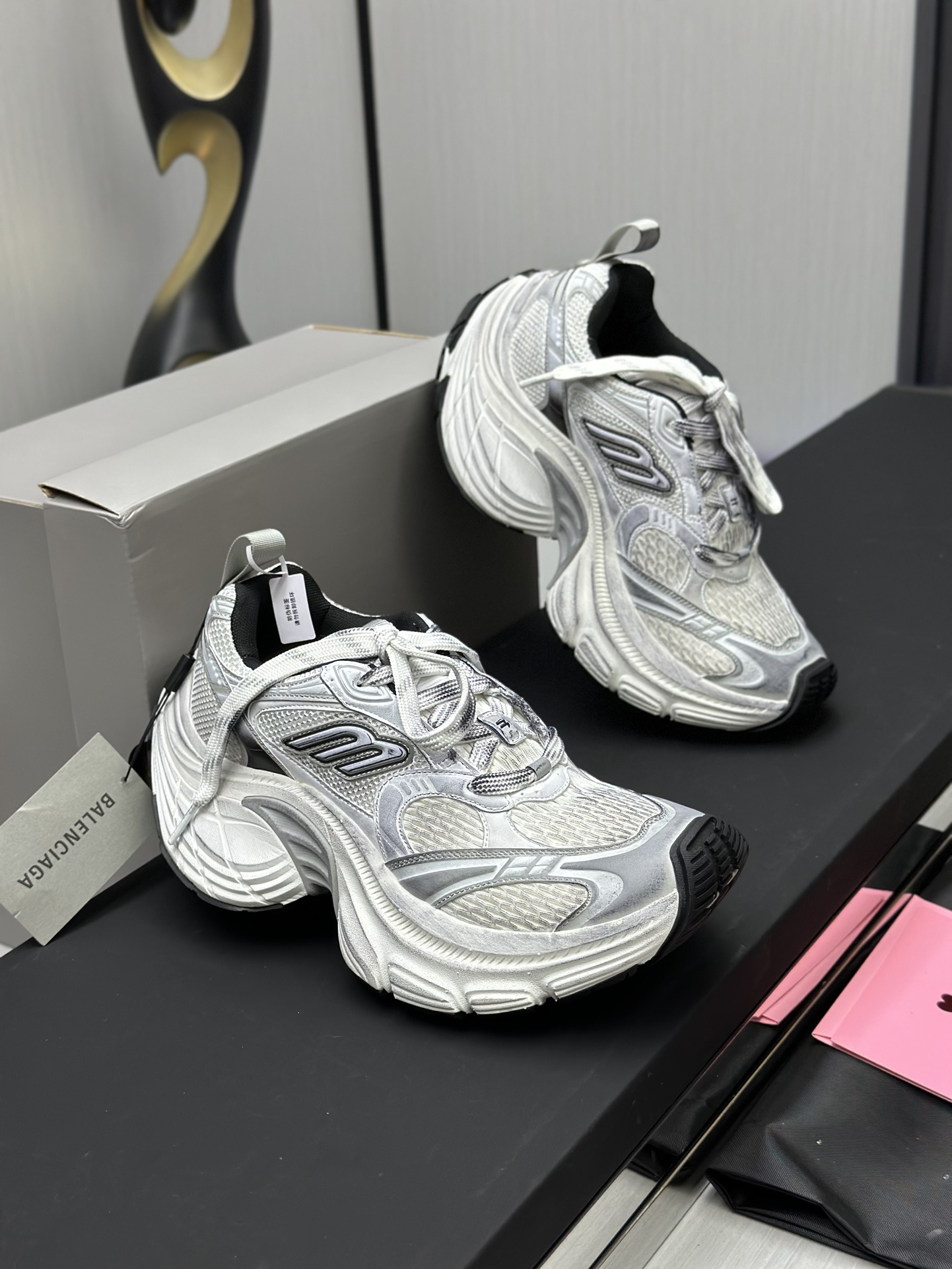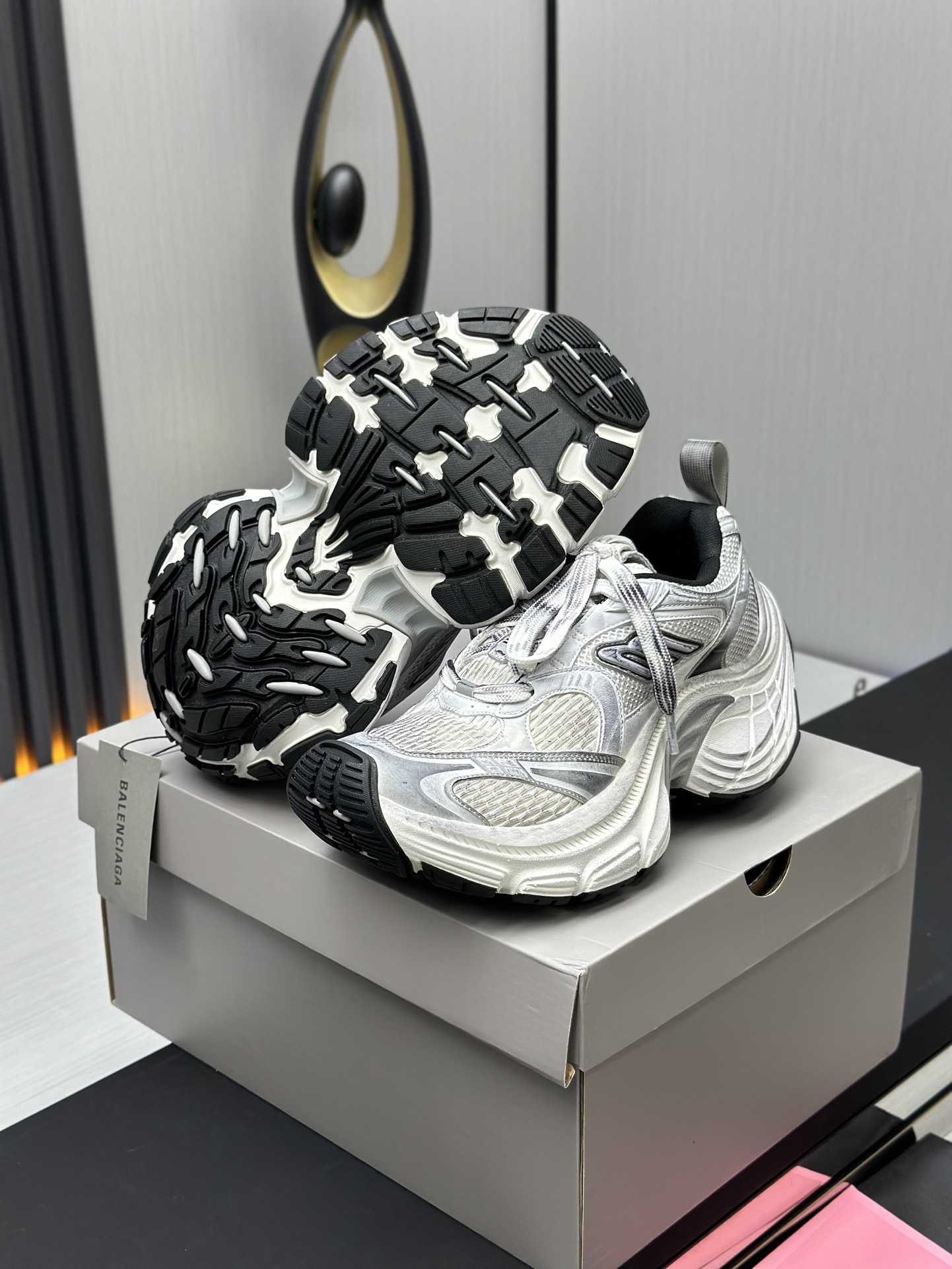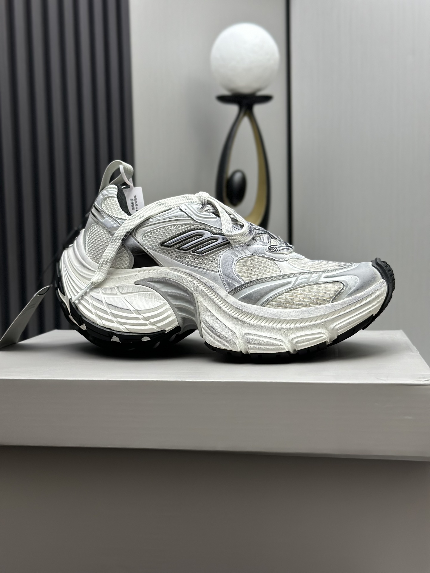 Balenciaga officially launches its new sports shoe model, the 10XL. This oversized shoe continues Balenciaga’s exploration of extreme exaggerated silhouettes, taking gym training shoes as the prototype and comprehensively enlarging the design structure to strengthen the association with athlete identity. The slanted logo B on the outside of the shoe presents a kind of accelerated running stance, full of movement. Despite its huge silhouette, this sneaker feels extremely light on the foot.