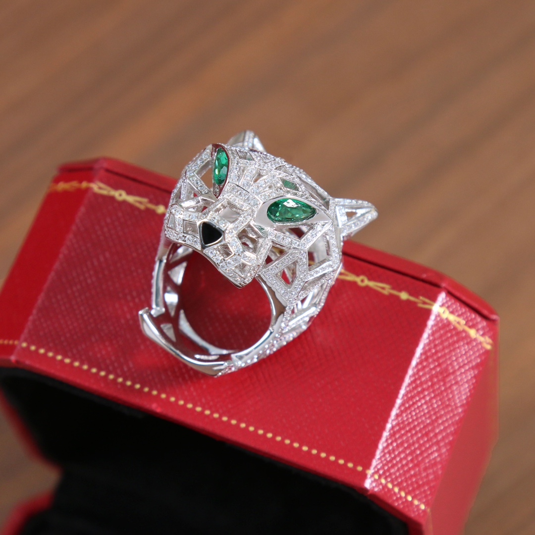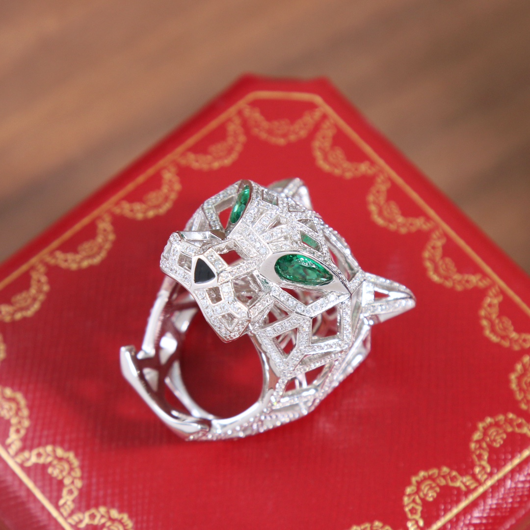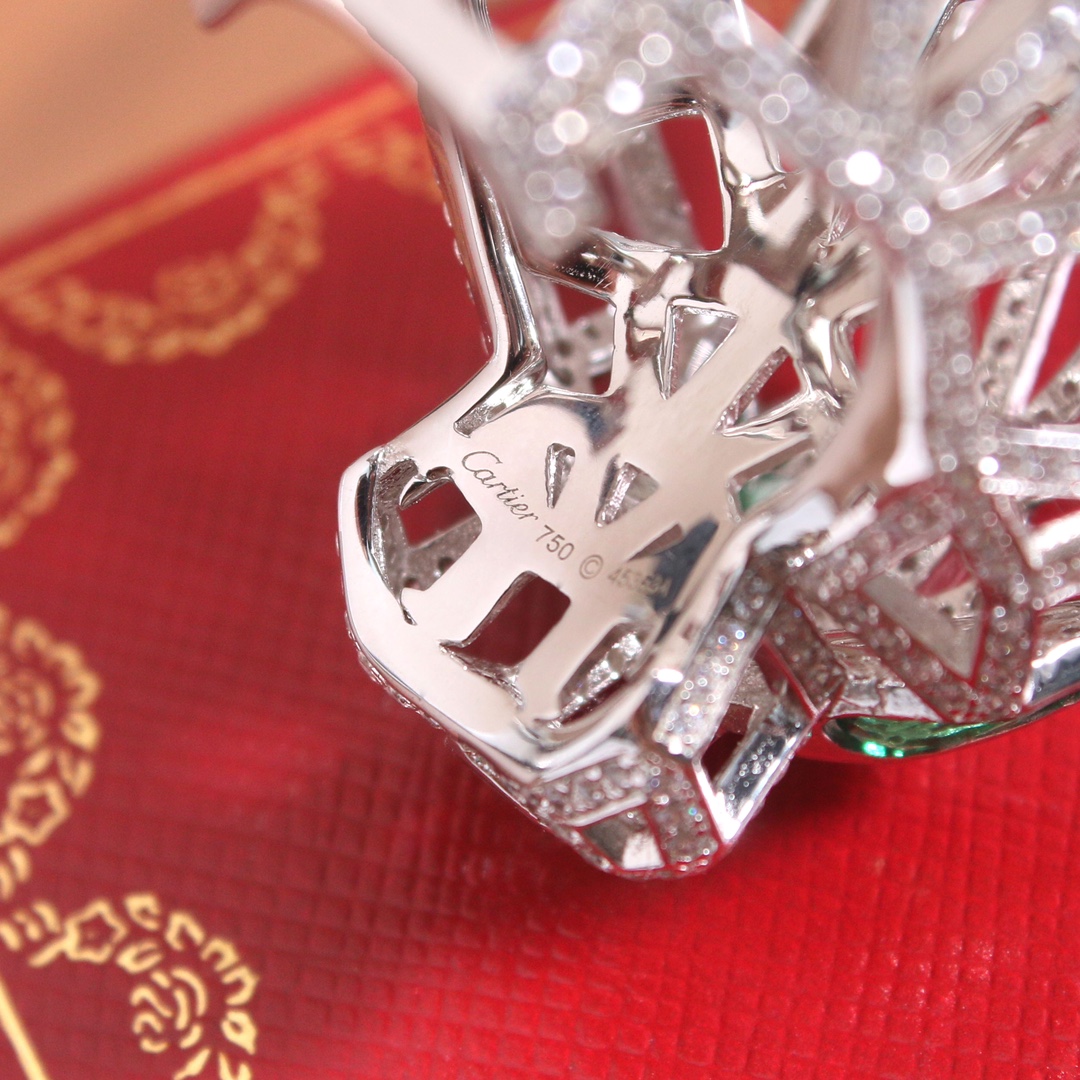 Cartier Jungle Series Hollow out Full Diamond Tiger Head Ring