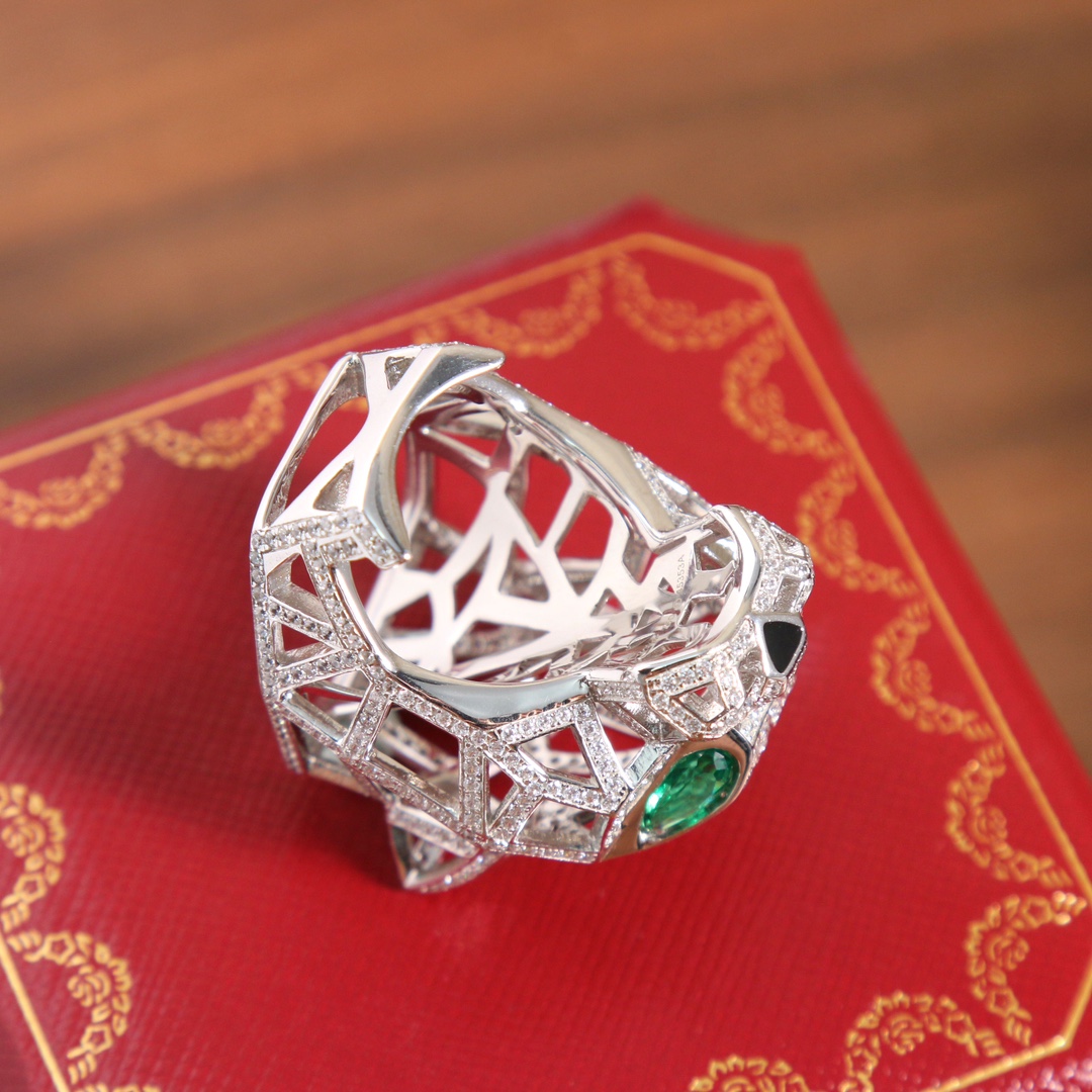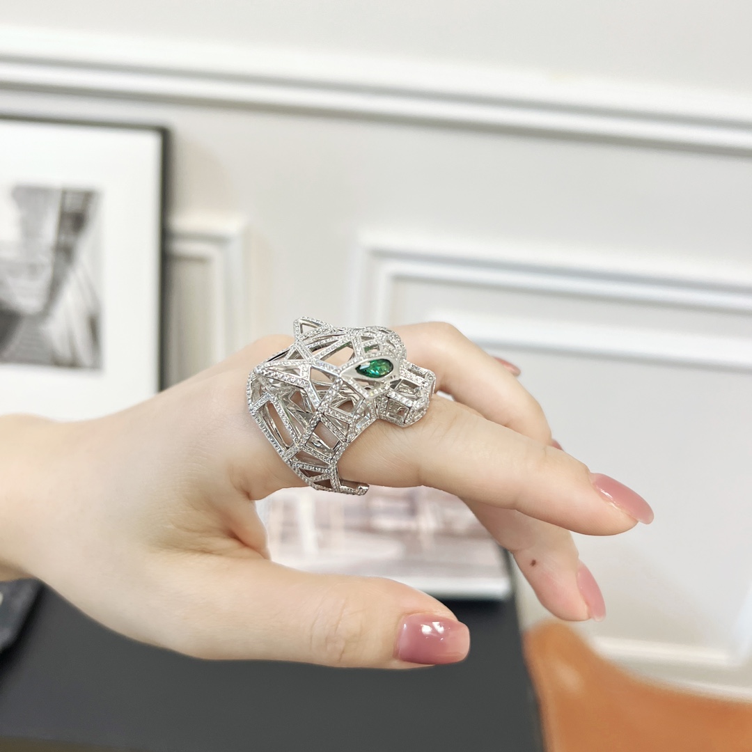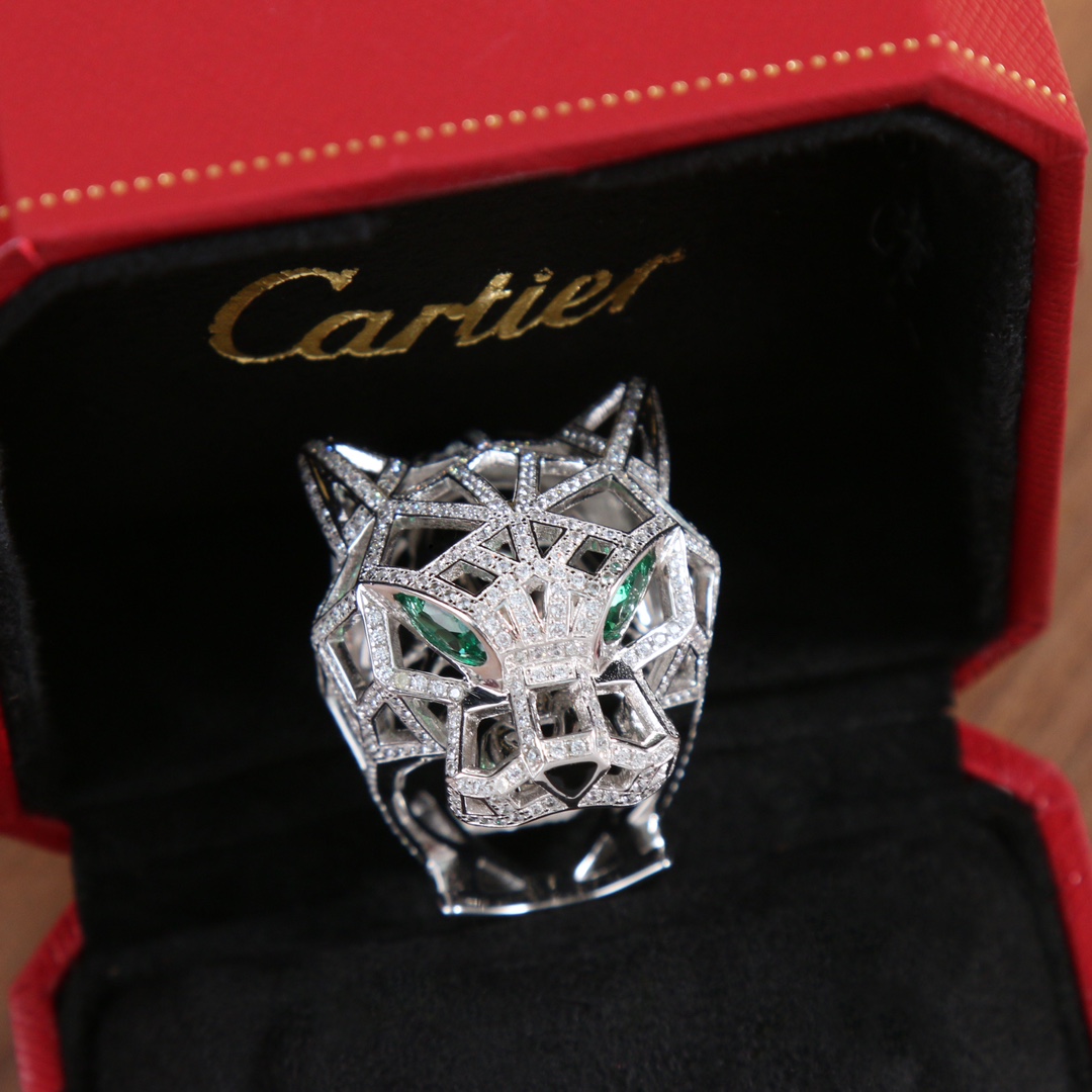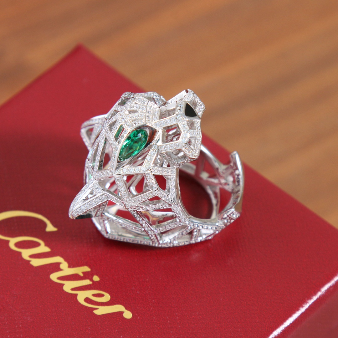 Cartier Jungle Series Hollow out Full Diamond Tiger Head Ring