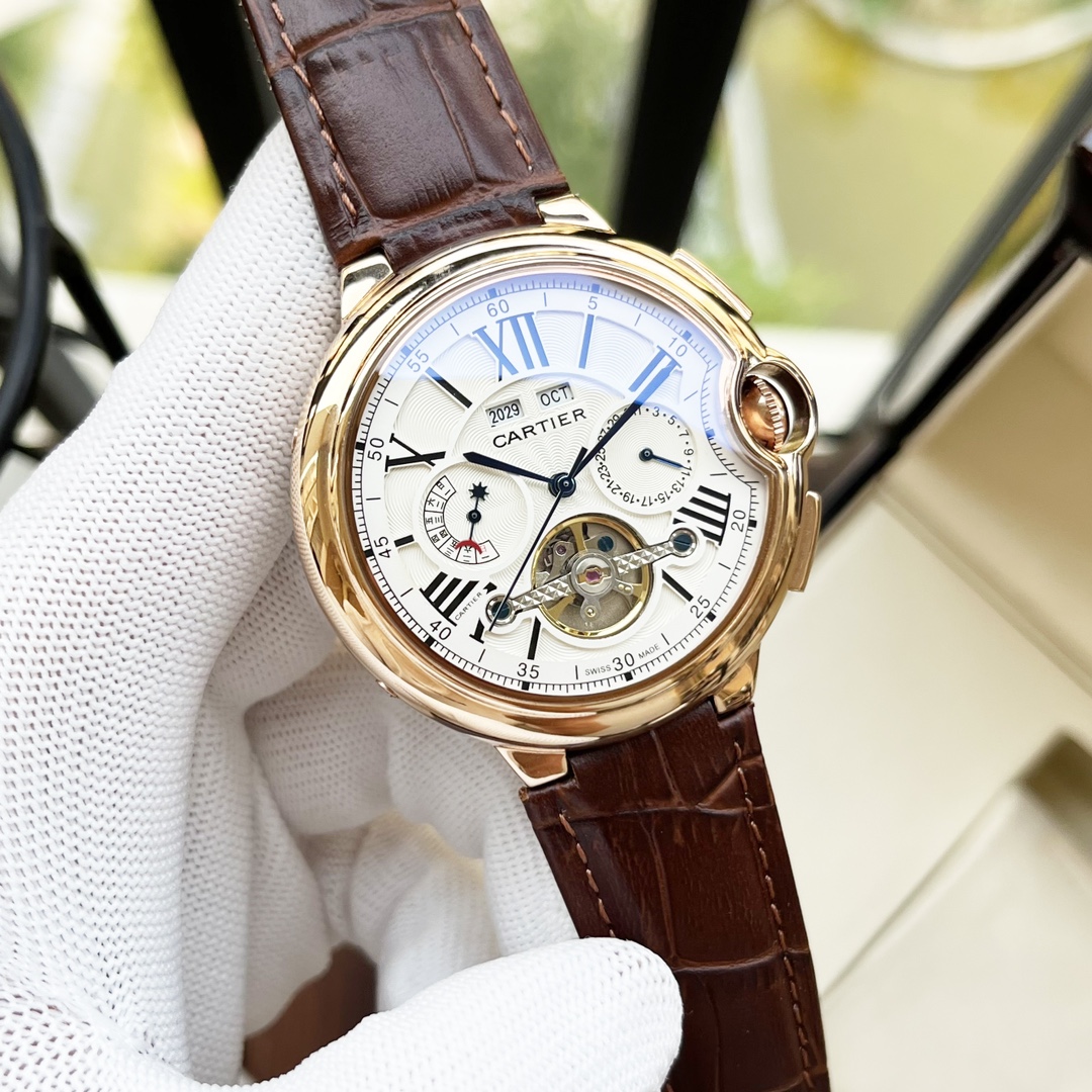automatic mechanical movement mineral reinforced glass 316L stainless steel case leather watchband fashion leisure business necessary