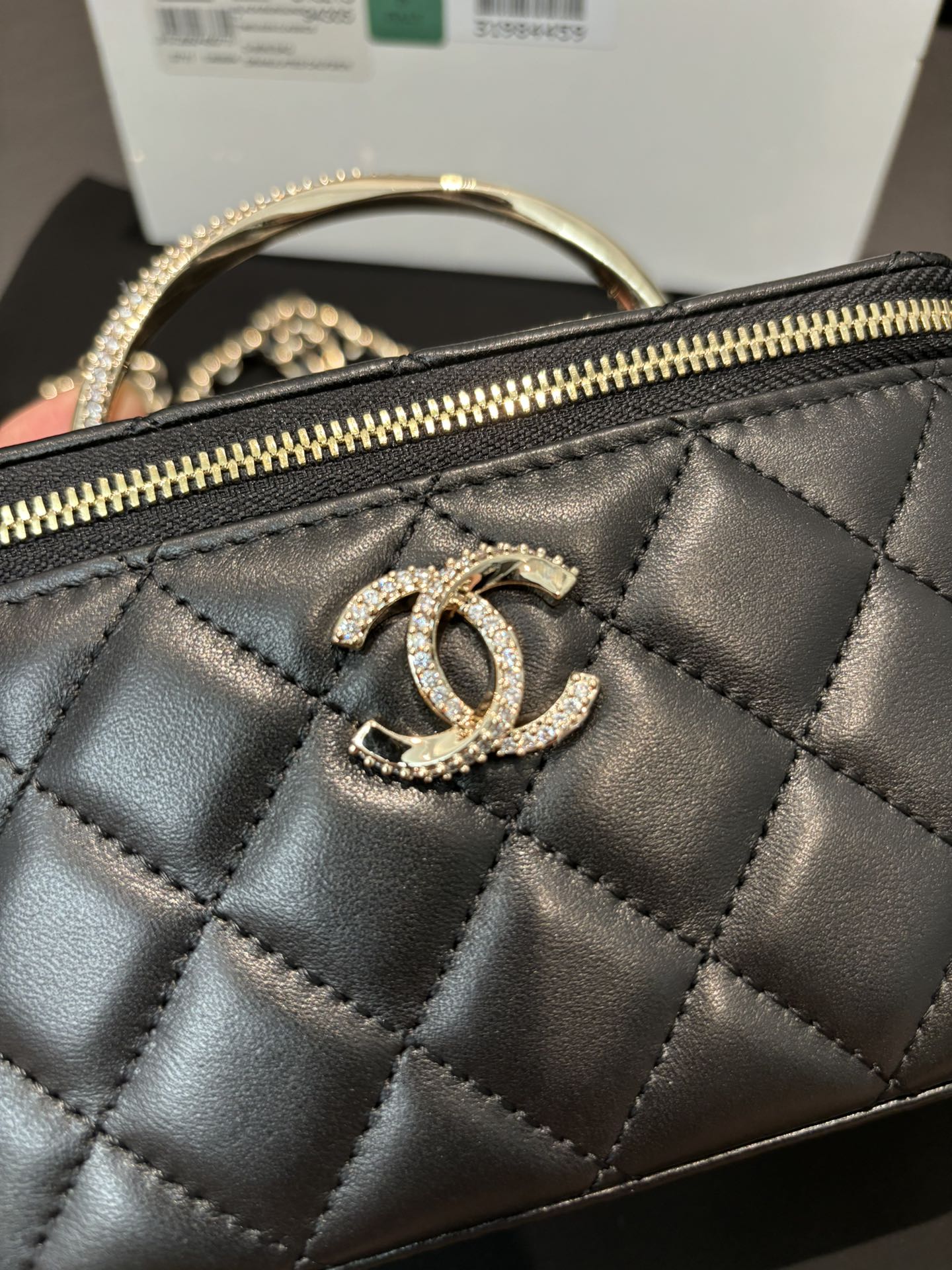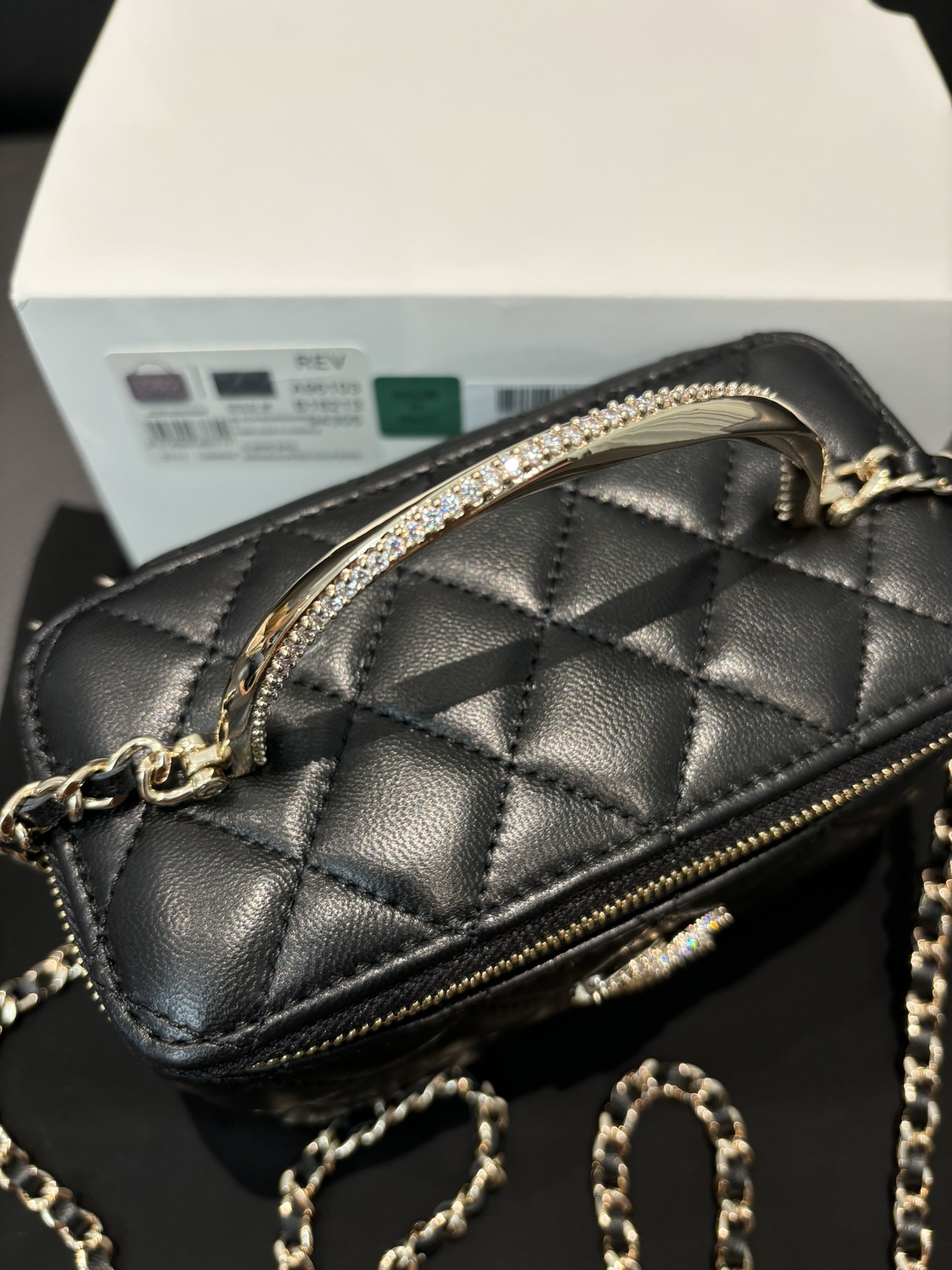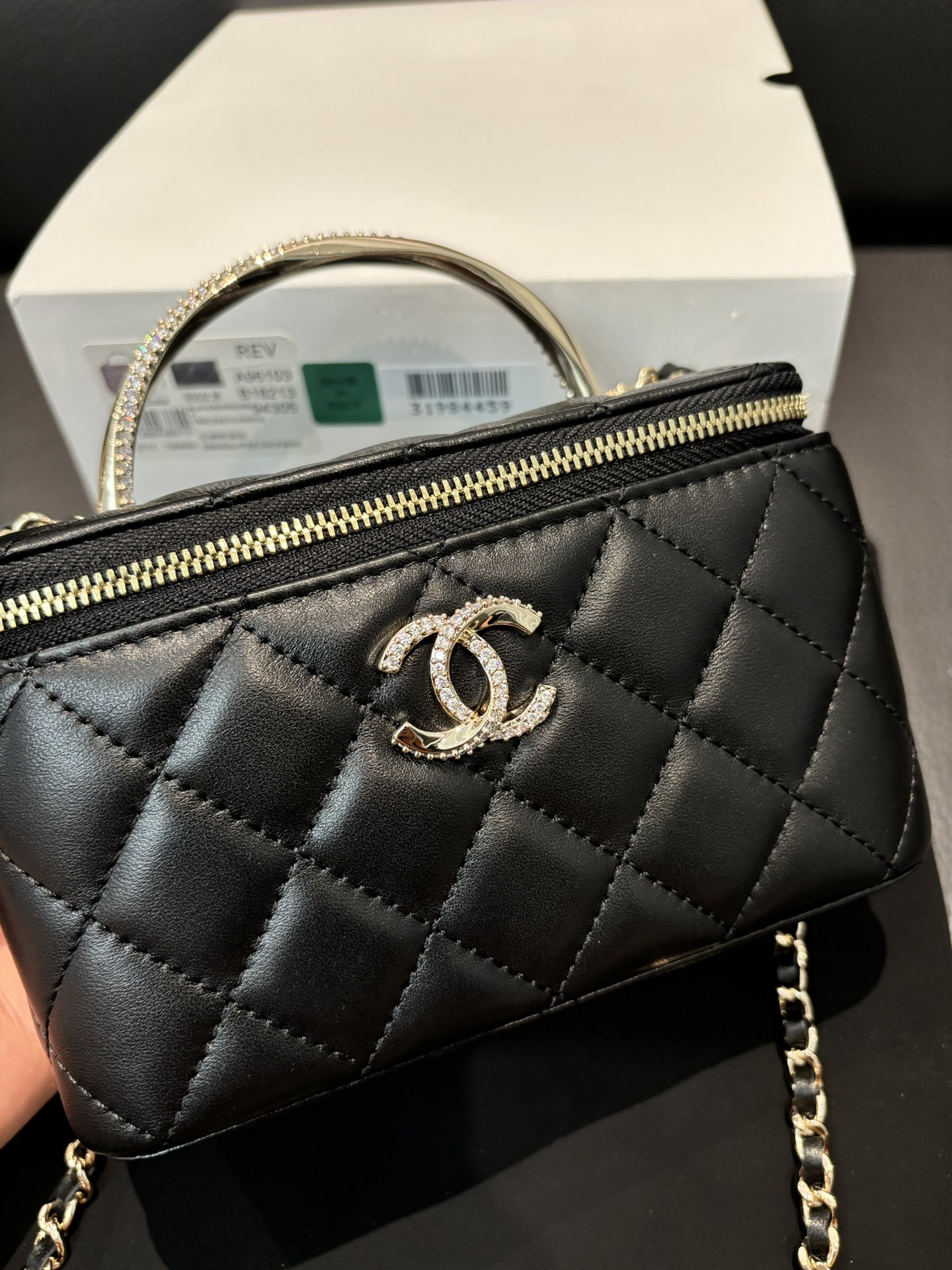 newest ๐ Box bag ๐ฉ๐ฉ 24K Explosive Flash Diamond CHANEL Pearl Handle Logo Water Diamond Design! The controller is truly stunning! Retro and gorgeous, exquisite like an artwork, the box bag is really yyds, with a lid and a small mirror ๐ช๏ผ The capacity is also large enough to accommodate 2 units ๐ฑ๏ผ A very practical one ๐ The design of the double C-buckle is also very special, with a feeling of blingbling, so exquisite and delicious~The sheepskin is very unique! It feels very durable! Pairing with any outfit can enhance your delicacy