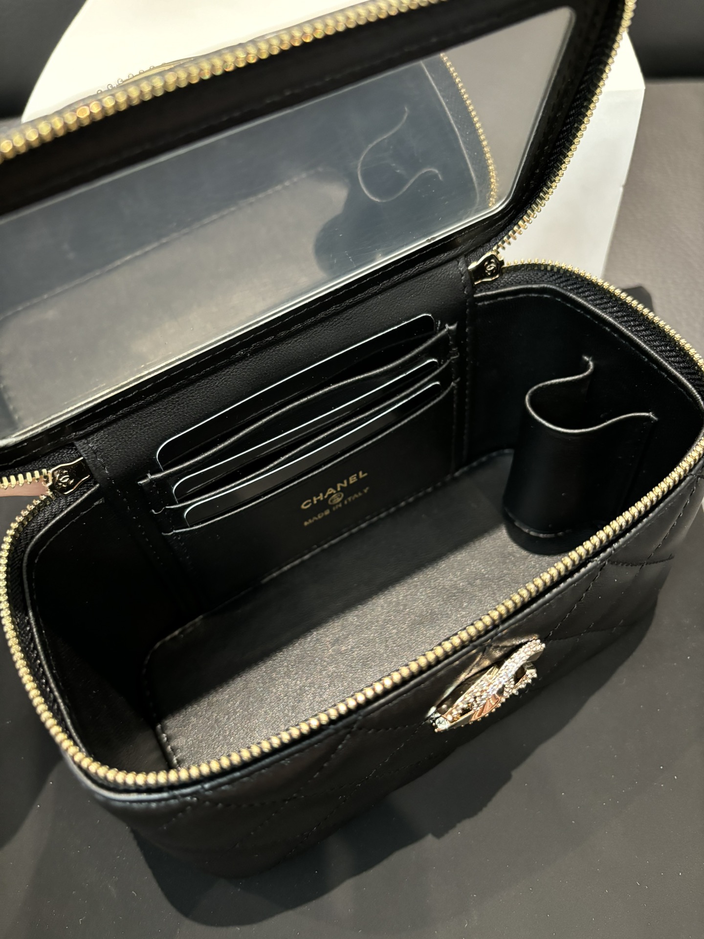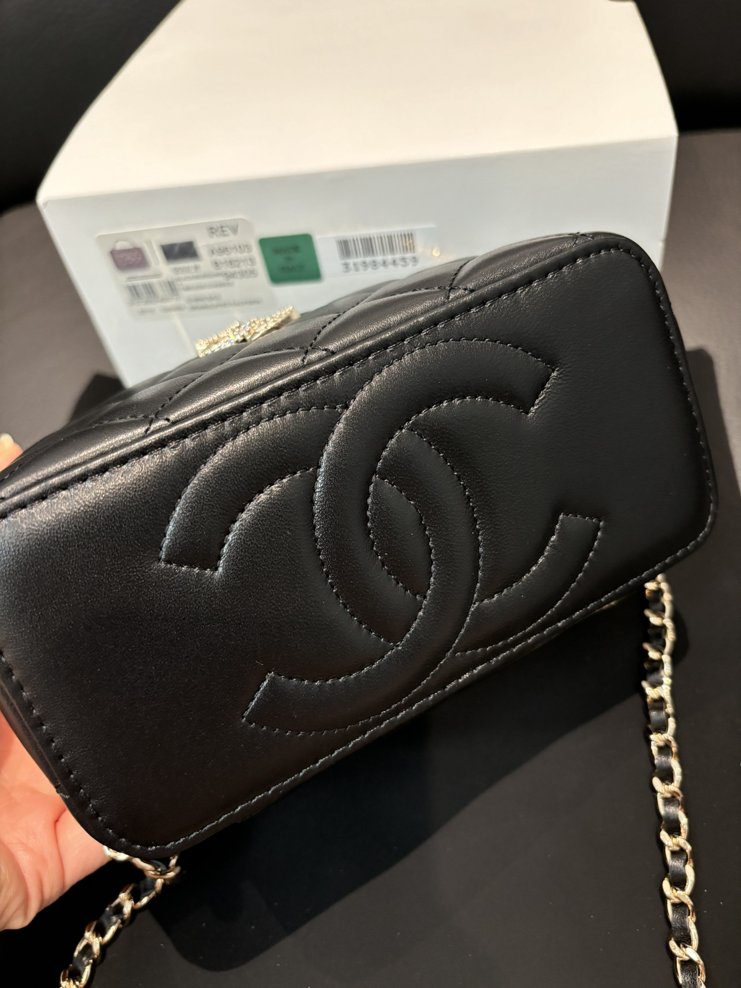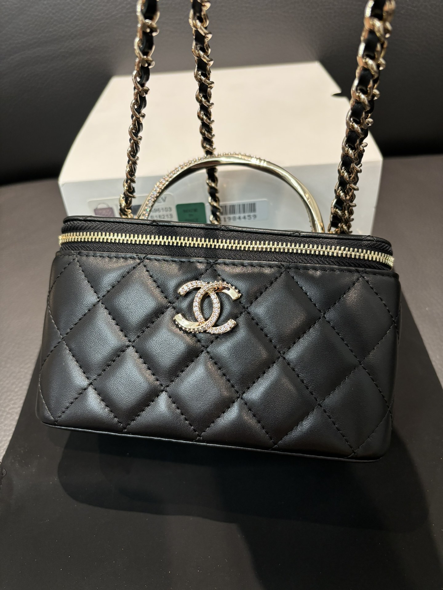 newest ๐ Box bag ๐ฉ๐ฉ 24K Explosive Flash Diamond CHANEL Pearl Handle Logo Water Diamond Design! The controller is truly stunning! Retro and gorgeous, exquisite like an artwork, the box bag is really yyds, with a lid and a small mirror ๐ช๏ผ The capacity is also large enough to accommodate 2 units ๐ฑ๏ผ A very practical one ๐ The design of the double C-buckle is also very special, with a feeling of blingbling, so exquisite and delicious~The sheepskin is very unique! It feels very durable! Pairing with any outfit can enhance your delicacy