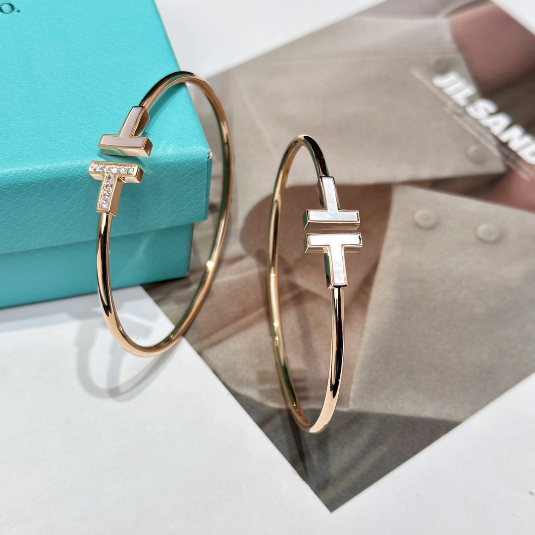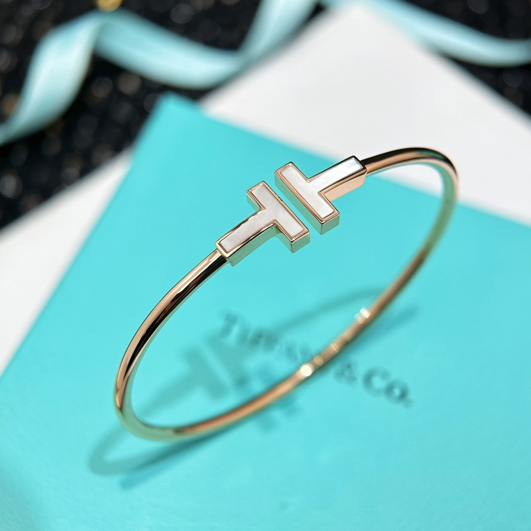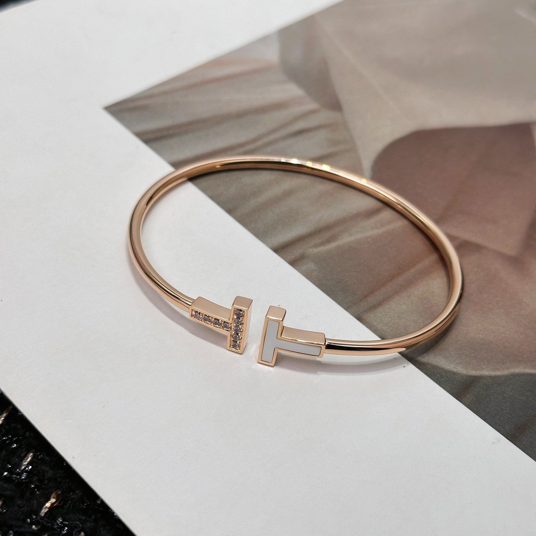 Tiffany&CO Classic T-shaped Series White Shell with Diamond Silver Rose Gold Double T Bracelet