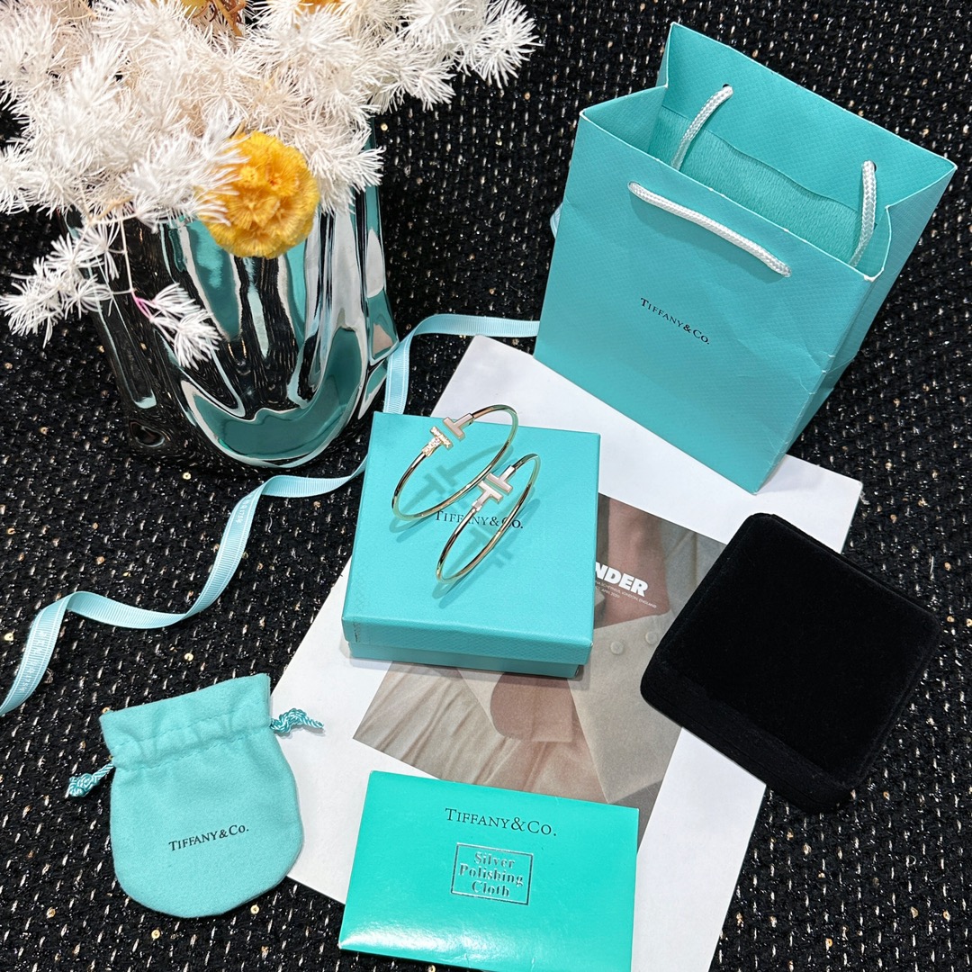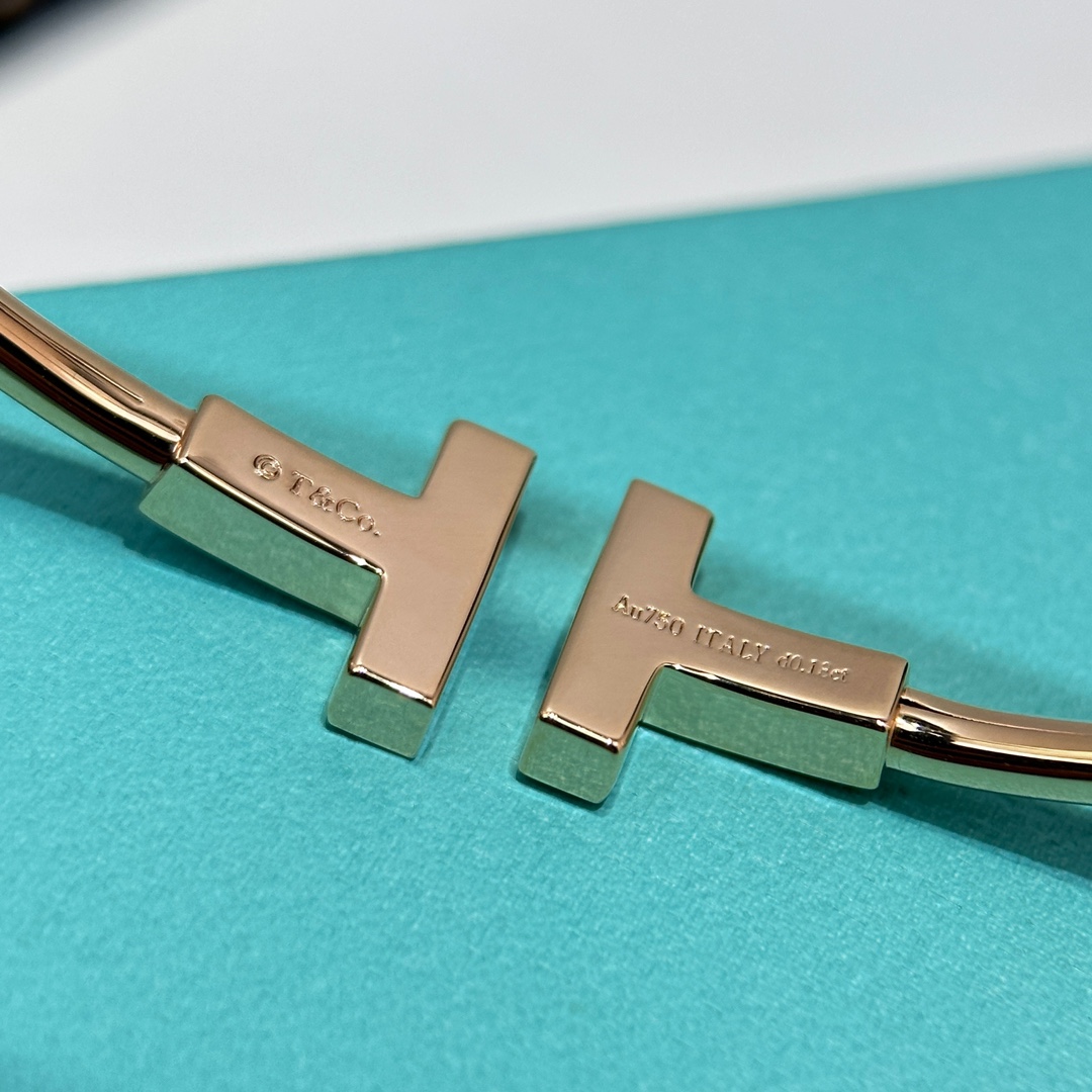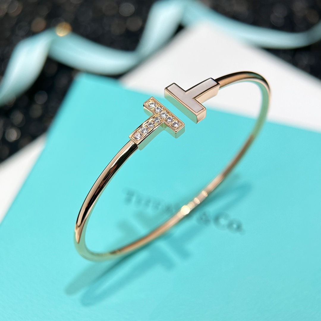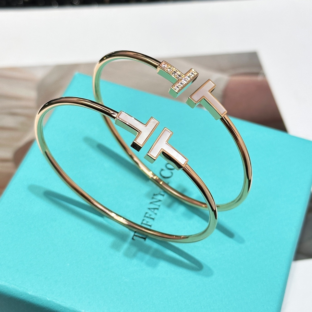 Tiffany&CO Classic T-shaped Series White Shell with Diamond Silver Rose Gold Double T Bracelet
